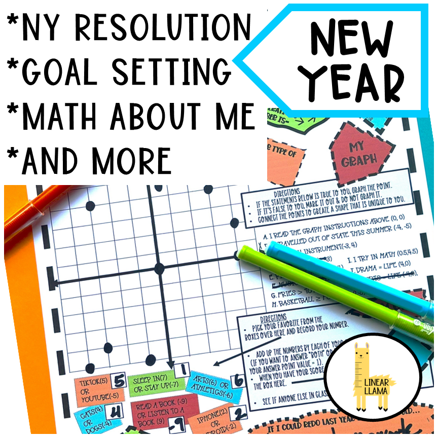 If you are looking for more, I have made a back to school Math About Me activity that I use typically on days two and three to ease students into math and get to know them a bit better. It also includes another personality test designed for math classes and a Find Someone Who icebreaker game. You can find it linked here in my shop. I have made it so that it can easily be used with incoming 7th or 8th grade math students and I’ve recently added some resolution and goal setting activities to it that make it great to use in January at the start of second semester.